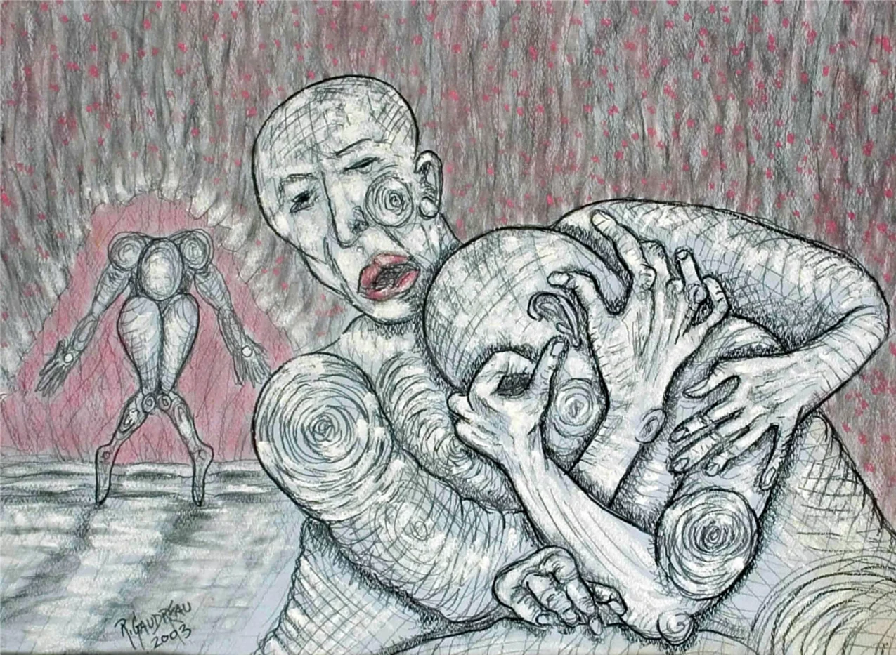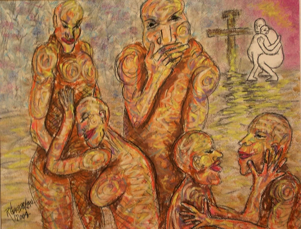 pastel, charcoal on paper