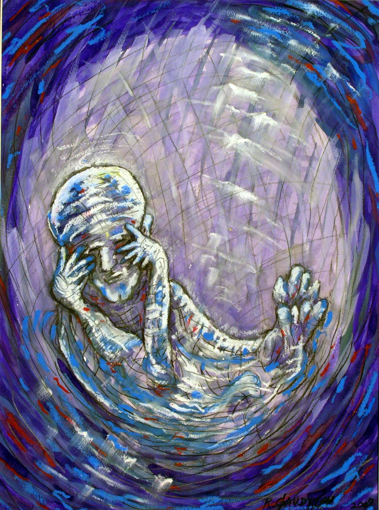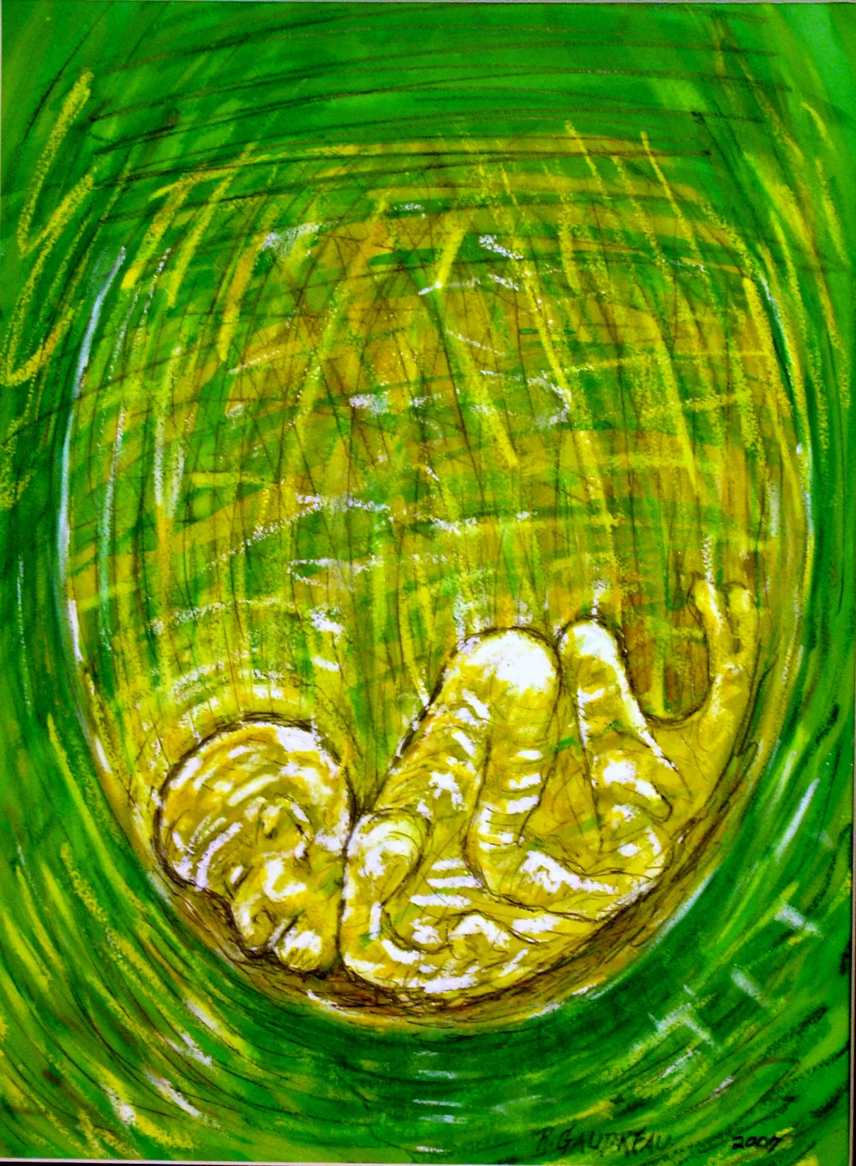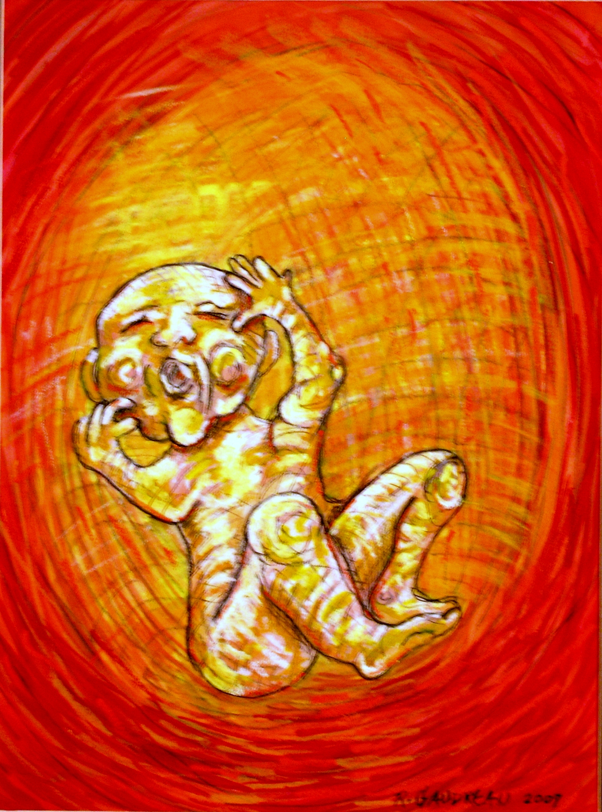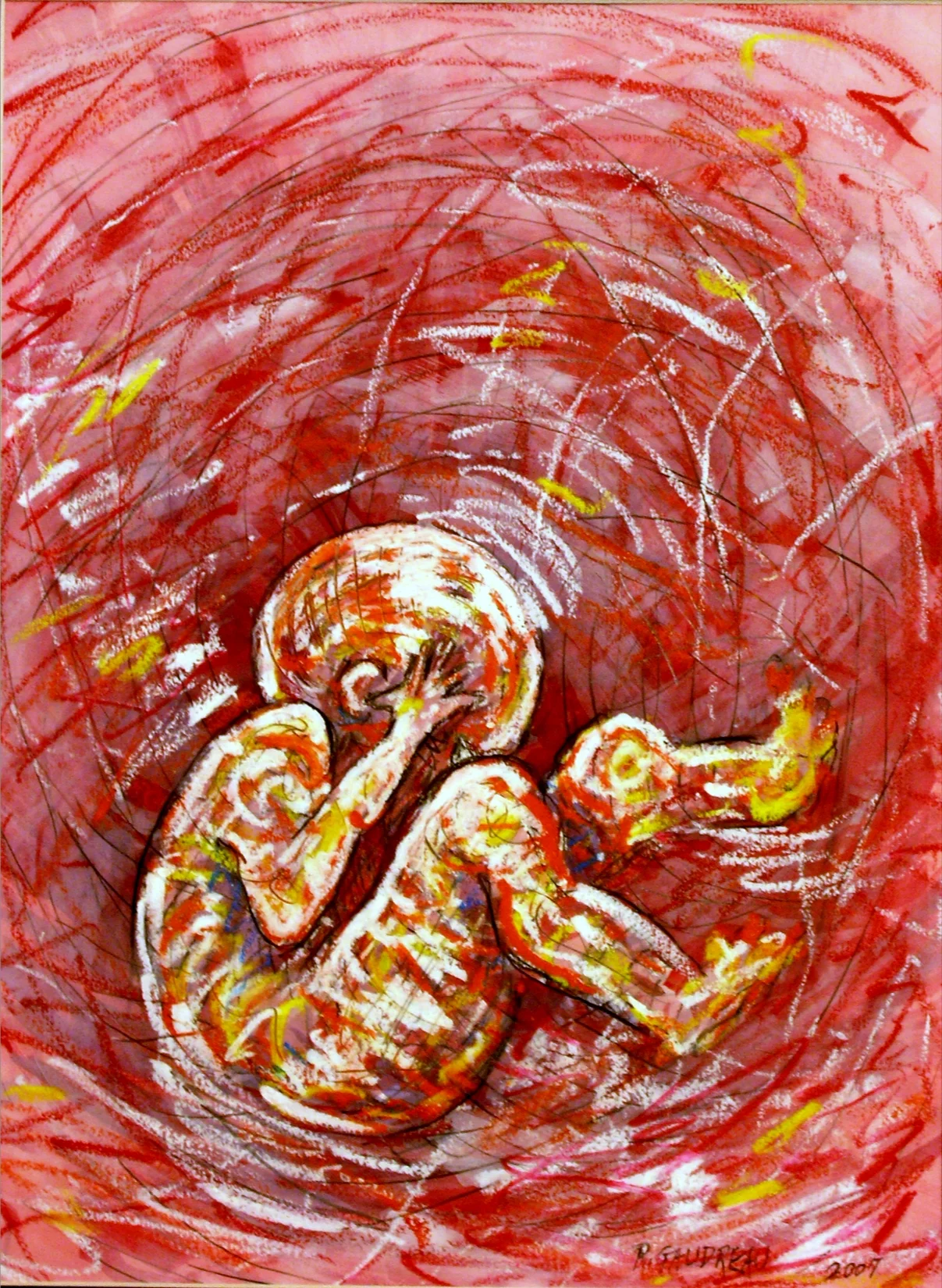 Gouache, Oil Pastel mixed media painting on watercolor paper
