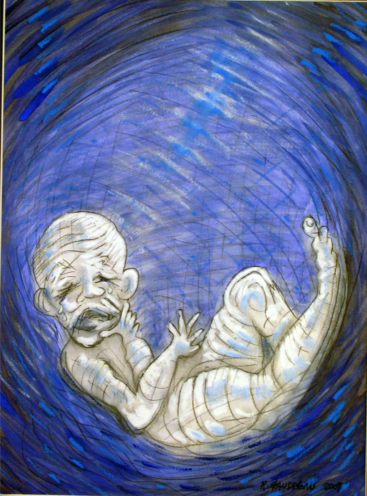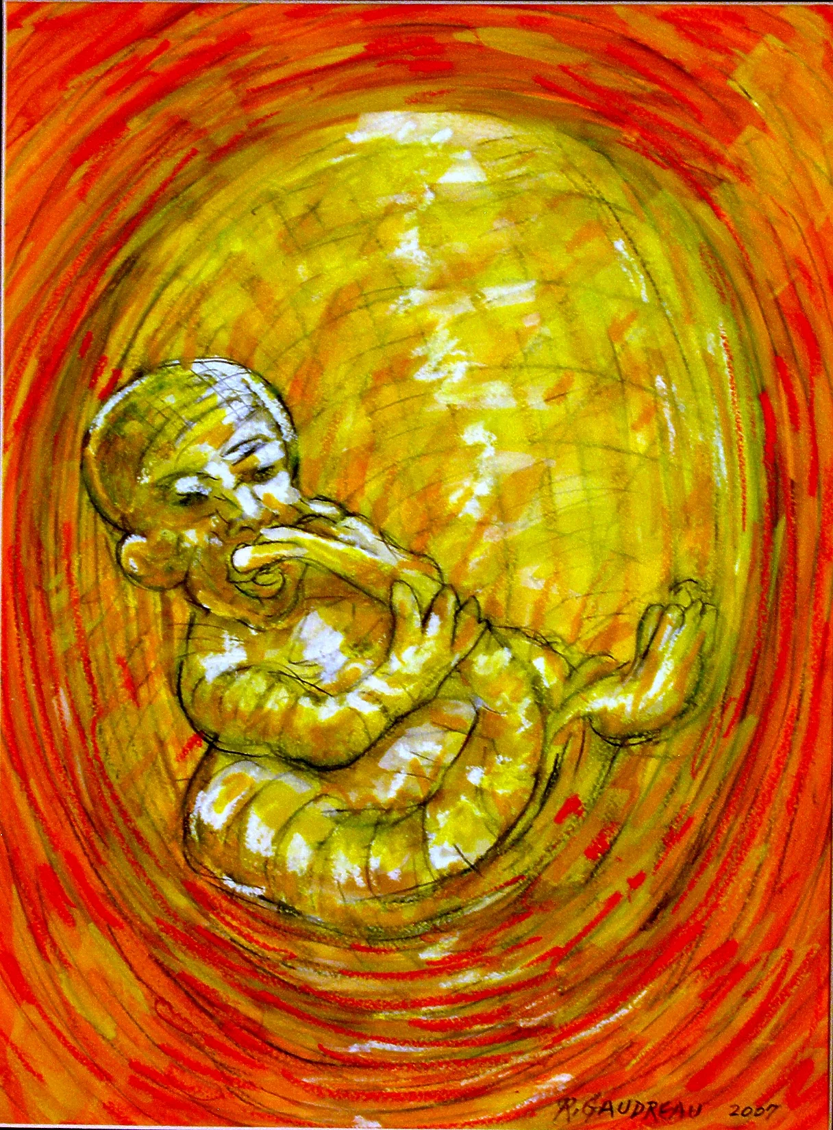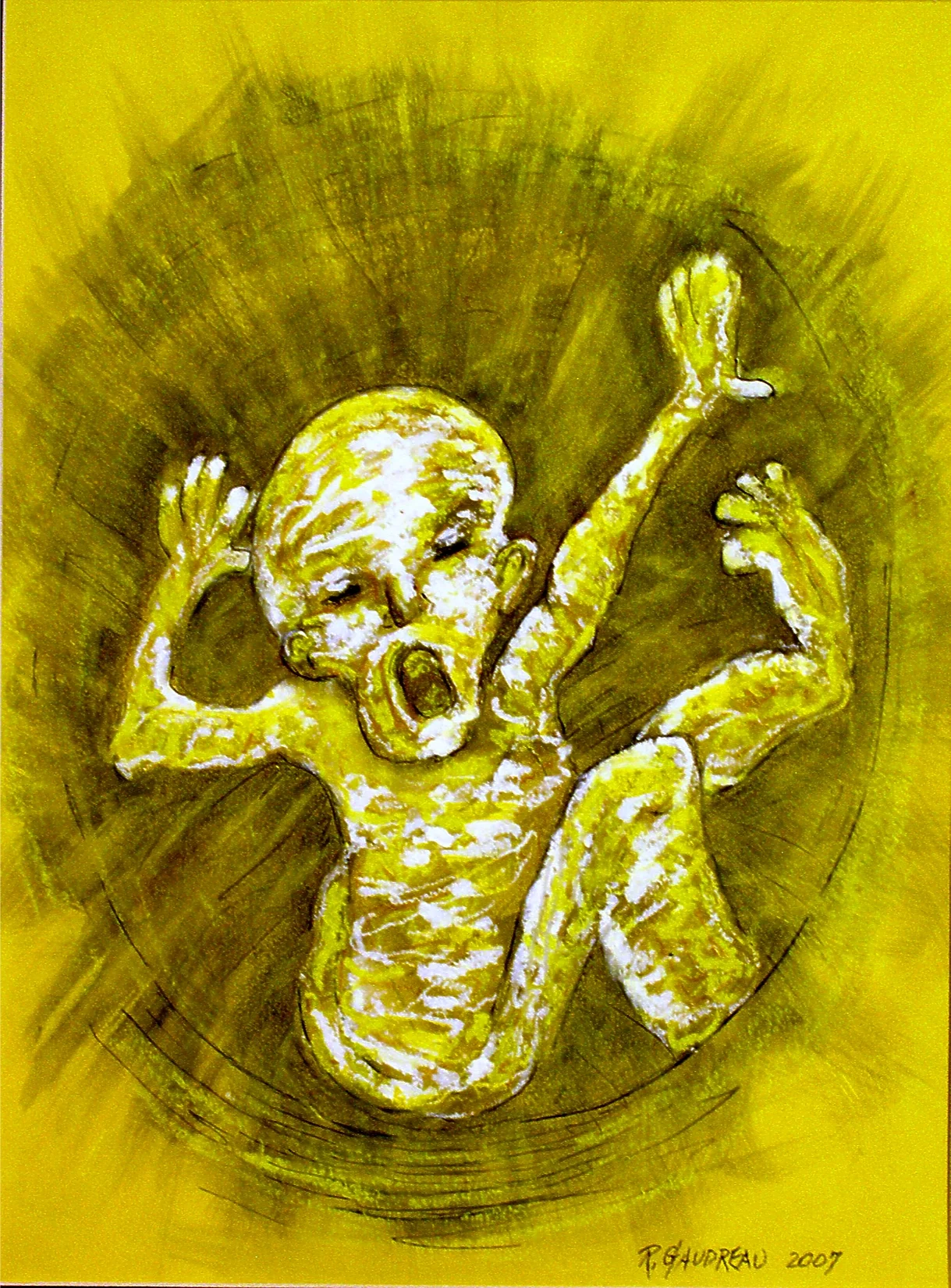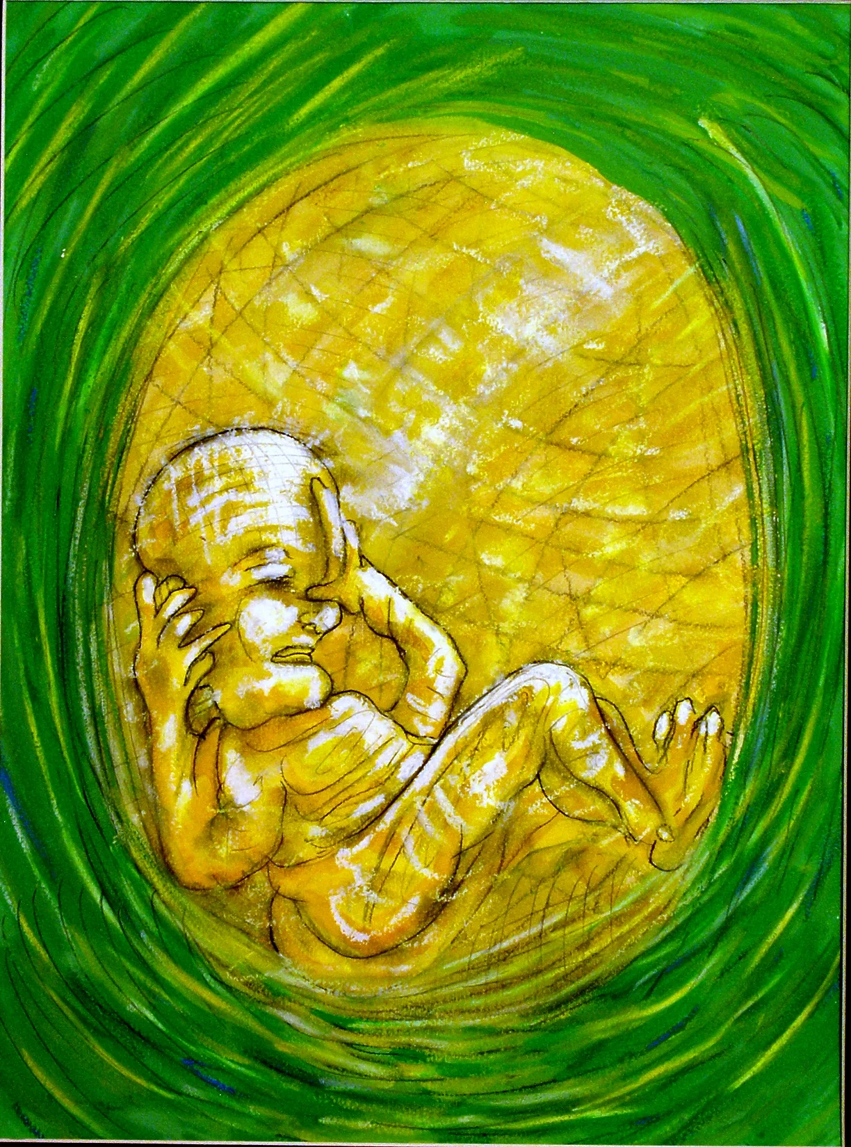 Gouache, Oil Pastel mixed media painting on watercolor paper